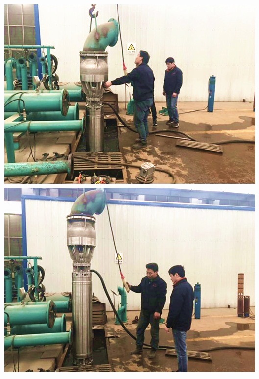 2019年5月21日我公司流量1200立方、楊程18米的不銹鋼304材質(zhì)潛水泵測試合格!